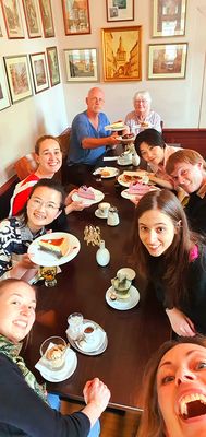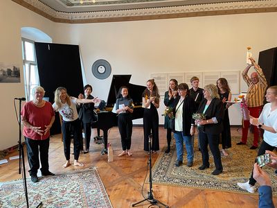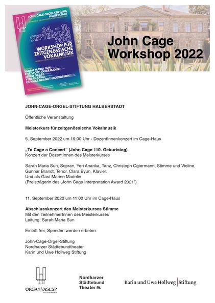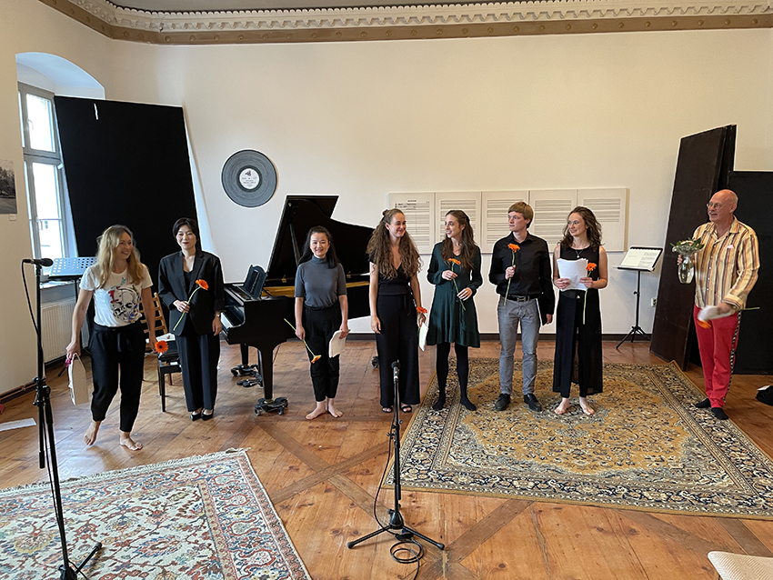 If you'd also like to know how our Workshop went: well, we did some fab concerts. 3 of them. Including Cage's 110th Birthday Party, a Fördervereinskonzert (wonderful German word) and our Final Concert of the Workshop. We also inaugurated a mindblowing sculpture called "Decay" in collaboration with the Impuls Festival, and enjoyed a luxury lunch with the Cage Förderverein. And had tea time with Petra's incredible cakes at the Stephanus Café. And then there were of course all those lessons, coachings, lessons, coachings, lessons, c... (you got the point). Physical Training with Yeri, Voice Physicality and Stage Tech Knowledge with Gunnar, Cage Intro Lecture and Imrov with Christoph, Piano Coachings with Hyerim and all other voice stuff with Sarah.... All in all we were never too bored and even had some fun. Feel free to apply for 2023